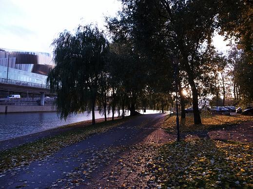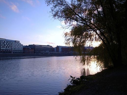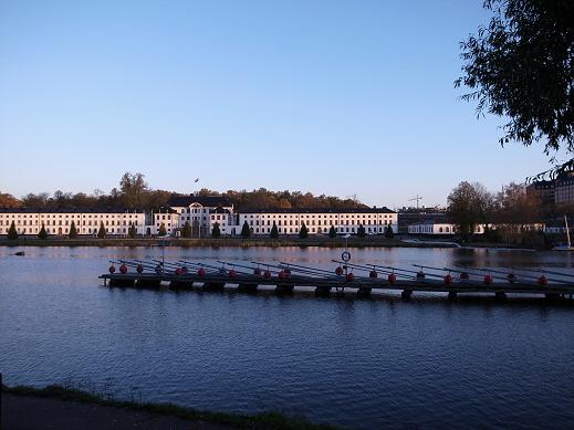 お城の脇を通って、水辺に出て