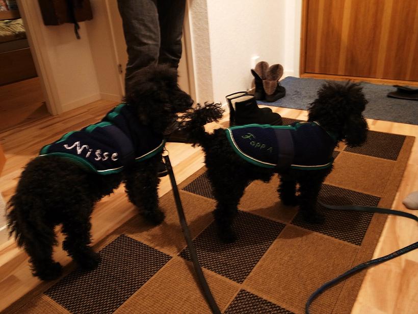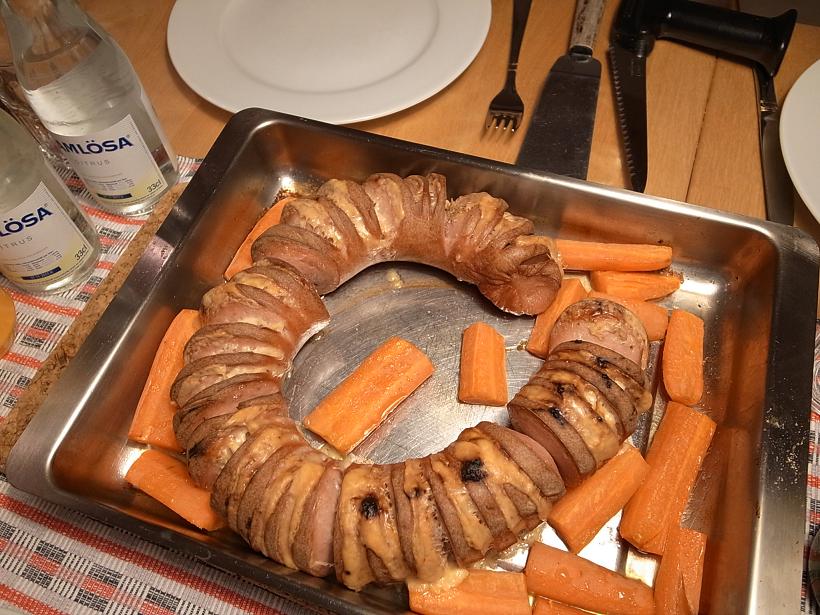 写真は家族のワンコたちとFalun名物のFalukorv。