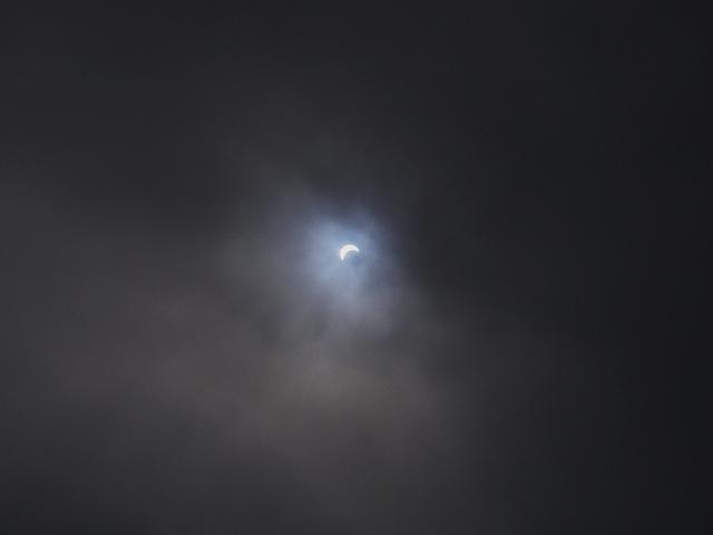 雲間から日食を観察