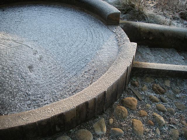 でもクリスマス飾りの残りのようなものが、凍っててキレイ。