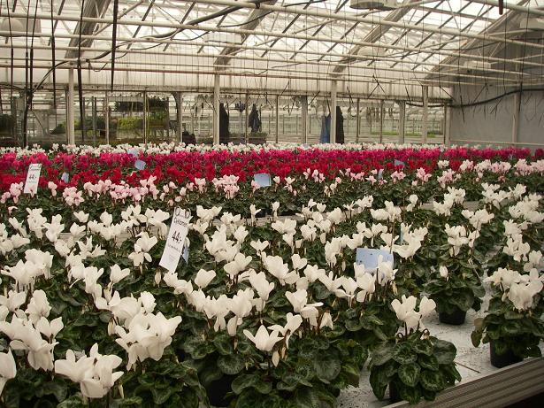 お店の中にはお花の苗が。もうシクラメンの季節。