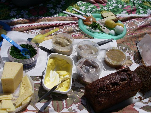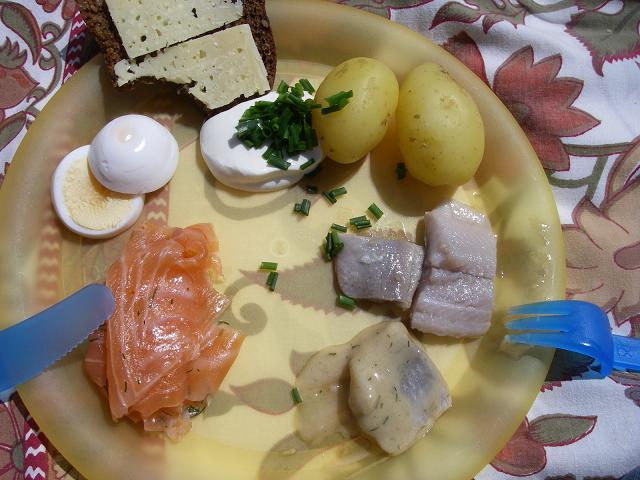 sill(ニシン)の酢漬けとサーモン、ゆで卵、ポテト。